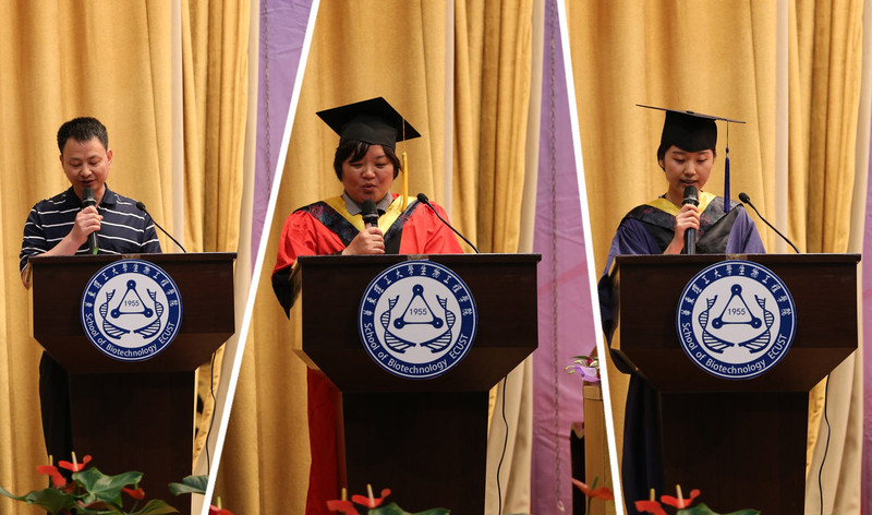 2016届学生毕业盛典在逸夫楼报告厅举行。毕业盛典分红毯仪式、毕业典礼及毕业晚会三部分。生工学院院长庄英萍、党委书记陆兵,院学位委员会主任张元兴,院学位委员会委员许建和、谭文松、储炬,副院长卢艳花、王启要,应用生物学系系主任吴海珍、食品科学与工程系系主任周英等为毕业生颁发证书及拨穗正冠。此外,2016届全体毕业生、2012级各班班导师、全体思政辅导员、学院专业教师代表、学生家长代表欢聚一堂,共同见证了这一庄严的时刻。毕业典礼由院党委副书记吴蓉主持。