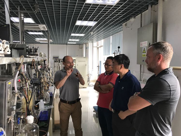 美国ADM公司在十九世纪中期成立, 总部位于伊利诺依州迪克特市。ADM从成立初期的单一亚麻加工为主要业务发展成为今天拥有粮食加工、贮运和全球贸易的大型国际集团。它在大豆、玉米、小麦和可可综合加工工业方面的成就一直名列世界首位。作为ADM十三个部门之一的生化部, 成立于1989年。它利用ADM发酵工业的经验把现存充足的谷物原料有效地转化成高价值产品。此次来访就是针对目前其在发酵过程放大中碰到的诸多技术问题来寻求合作的。