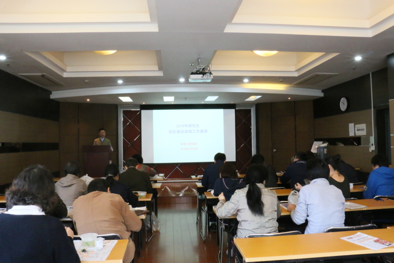 在实验十八楼315召开2018年研究生复试录取工作宣讲培训会。学院党委书记陆兵,院长庄英萍,副院长卢艳花,以及各研究生复试导师参加了此次会议。