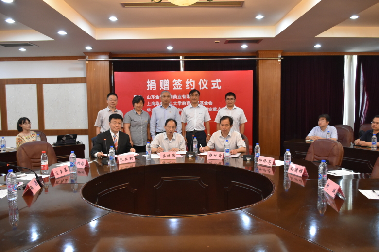 副院长兼生物反应器工程国家重点实验室主任张立新、山东金城医药集团股份公司董事长赵叶青、总经理杨修亮等出席了捐赠仪式。