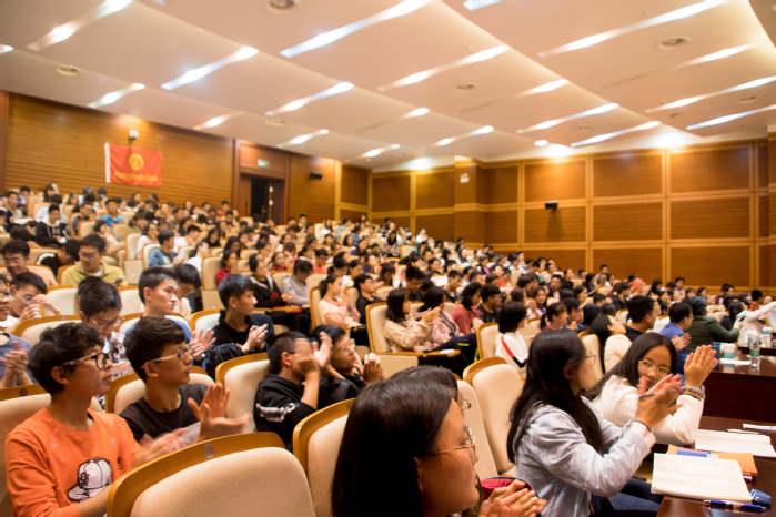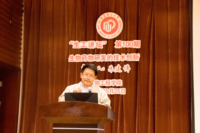 生化工程专业82届校友、上海交通大学药学院院长朱建伟教授分享校园岁月和科研心得。生工学院院长庄英萍主持了本场活动。学工委主任吴蓉、各年级辅导员与300多名学生们共同参与了活动。
