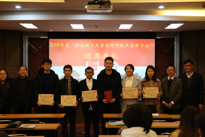 院长特别奖学金暨东阿阿胶杰出奖学金,并与2014年进一步升级为“华东理工大学-东阿阿胶杰出奖学金”,每年出资六万,用于奖励华东理工优秀本科生、硕士生、博士生各两名。