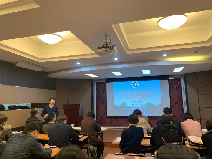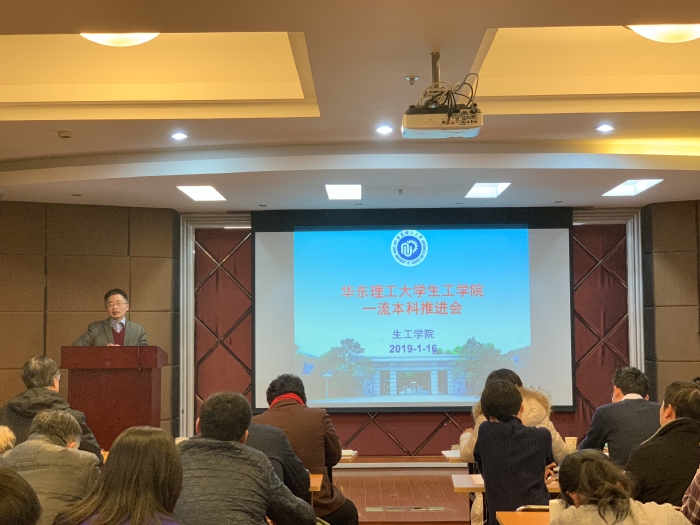 王启要首先向大家介绍了全国教育形势和召开一流本科建设推进会的背景。学校在2018年12月19日召开华东理工大学一流本科教育建设会,全面梳理和总结了2018年的教学工作状态。为了推进学校“双一流”建设,学院积极总结和梳理2018年的工作成绩与问题,并重点对本科教学工作中出现的问题进行分析,提出解决办法和应对措施。