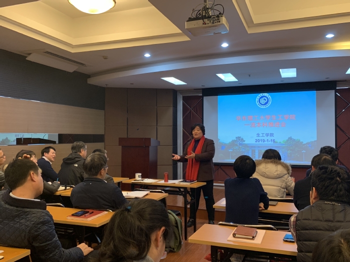 全院教职工齐心协力,为建设生物工程一流专业、建成生物工程一流学科共同努力。庄英萍强调,以教研室为单位,全面梳理各专业培养方案,将培养学生的责任落实到每一门课、每一名教师,真正做到“以学生为中心”,推动课程建设,打造“金课”,淘汰“水课”,全力推进教育的“四个回归”,聚焦“培养人”这一根本使命,大力推动华东理工大学一流本科建设。
