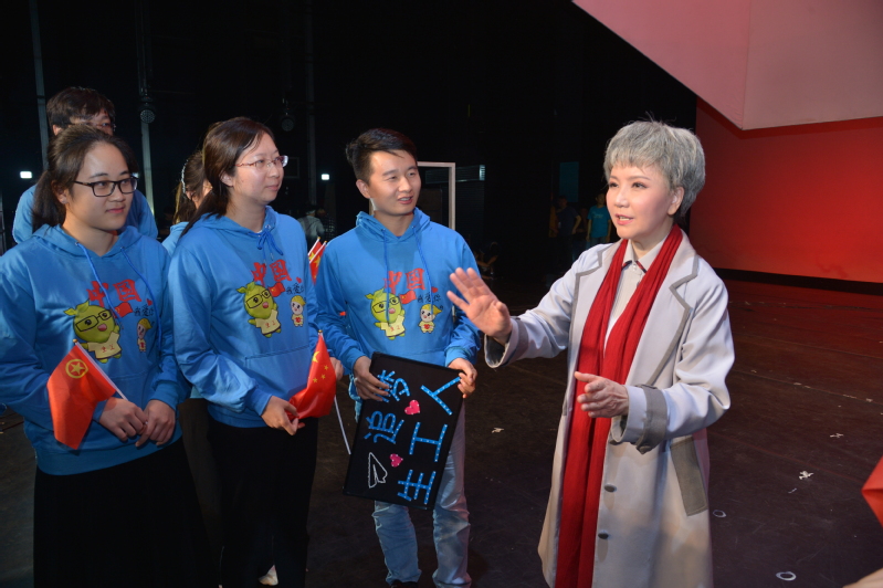 师生亲切交流,上海沪剧院院长茅善玉(樊锦诗饰演者)表示非常高兴这么多年轻人来观看《敦煌女儿》,希望能够把剧中的“敦煌精神”传递给青年一代。国家一级演员钱思剑(彭金章饰演者)讲述了故事原型扮演者的生平事迹和他为了妻子事业背后的默默支持,并对青年一代继续投身祖国建设寄予厚望。现场观剧的靳子扬同学表示《敦煌女儿》对他不仅是视听盛宴,更是精神传承,深深被坚守敦煌数十年的先辈的精神打动。作为新时代青年学子,要学习前辈们吃苦肯干、踏踏实实的精神,多做实事,多做贡献。