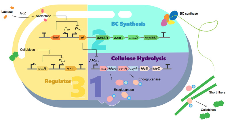 今年,华东理工大学代表队的项目名称是"纸变形金刚"(Paper Transformer)。废纸重新用于造纸过程中的关键问题是纸张纤维不断变短、降级,需要添加新的木质纤维素。项目组通过基因工程手段设计可调控的基因电路,使改造的基因工程大肠杆菌("纸变形金刚")能利用废纸浆中的短纤维素,合成和生产长链的细菌纤维素,并将该细菌再气升式发酵罐中大规模生产细菌纤维素。项目组进一步设计了整套生产工艺和发酵工厂,用于大规模发酵生产细菌纤维素。同时,项目组用3D打印技术将发酵生产车间打印成3D模型,良好地展示了整个项目。生产的细菌纤维素除了用于造纸生产普通纸张,还能够用于生产特种纸张和其他生物材料,用途非常广泛。