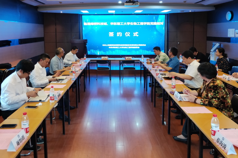 委员会结对共建协议书》上签字。签约仪式结束后,临港南桥科技城一行人员参观了生物反应器工程国家重点实验室。