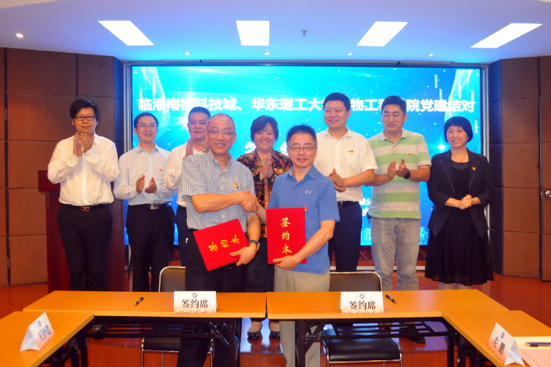委员会结对共建协议书》上签字。签约仪式结束后,临港南桥科技城一行人员参观了生物反应器工程国家重点实验室。