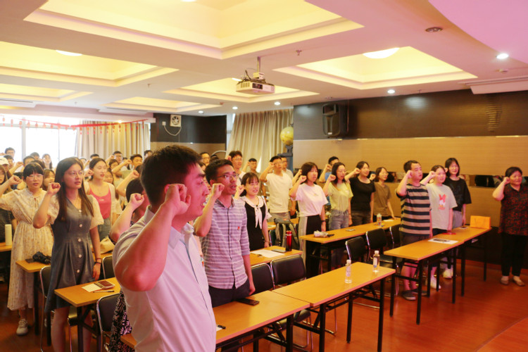 左鹏勉励全体毕业生党员,不忘初心、牢记使命,把个人理想融入党和国家的事业中,脚踏实地,努力奋斗,以优异成绩迎接中国共产党成立100周年。随后,在左鹏的带领下,全体毕业生重温入党誓词,铿锵有力的宣誓声响彻会议室,更久久回荡在党员们的心中。