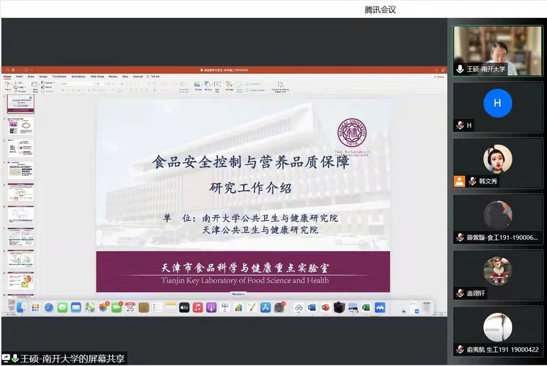 王硕教授首先介绍了其所在的食品科学与健康重点实验室及研究方向,并分别从食品营养与健康、食品安全与品质分析技术、食品品质控制机制研究三方面进行了详细介绍。在谈到食品安全与品质分析技术时,王硕指出,目前利用功能纳米材料构建的分析化学方法凭借其优异的物理化学性质,已成功应用于生物传感成像、催化降解、吸附分离、食品安全检测等方面。王硕从实验室研究出发,结合新兴研究技术,深度讲述了有关食品安全控制与保障的知识。