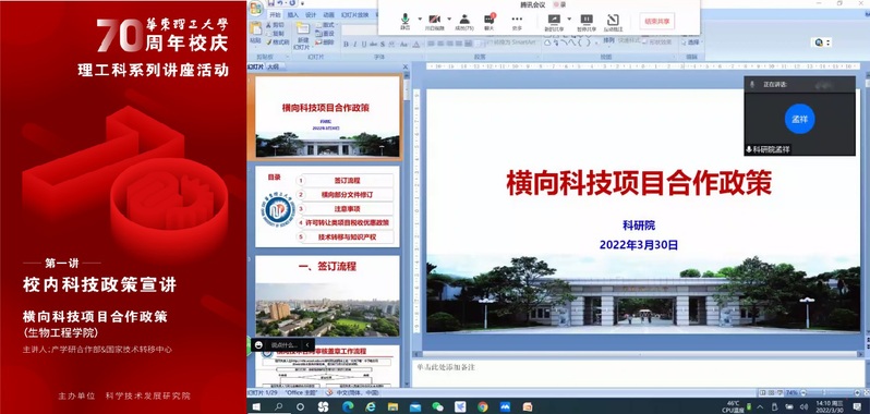 举办横向科技项目合作政策宣讲,作为70周年校庆理工科系列讲座活动之一,邀请了校科研院孟祥、全若兰、房国辰、黄玥等老师,为动漫av