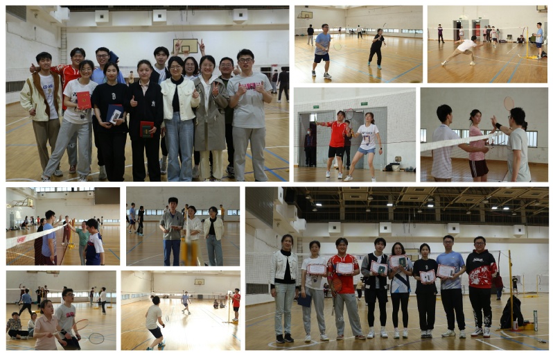 经过激烈角逐,陈梓天、刘玲分别获得男单、女单冠军,吴宵和周凯迪夺得男双冠军,陈梓天和邵弘庆组合获得混双冠军,大赛邀请学校羽毛球协会、生工学院教师胡晓鸣为获奖选手颁奖。在两院友谊赛中,来自药学院的邵晨夺得男单冠军,女单冠军由生工学院的刘玲获得,混双冠军归属药学院的邵晨、莫珂珉组合,生工学院研究生辅导员孙希彤、药学院本科辅导员邵桐两位老师为获奖同学颁奖。