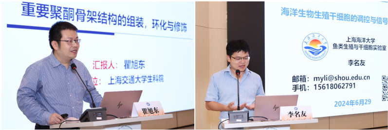 围绕海洋药物相关领域,上海交通大学瞿旭东教授作题为“重要聚酮骨架结构的组装,环化与修饰”的报告,上海海洋大学李名友教授作题为“海洋生物生殖干细胞的调控与信号传导研究”的报告,华东理工大学谭高翼教授作题为“血红素及金属卟啉类化合物的高效生物制造”的报告。报告内容翔实、视野开阔,赢得阵阵热烈掌声。