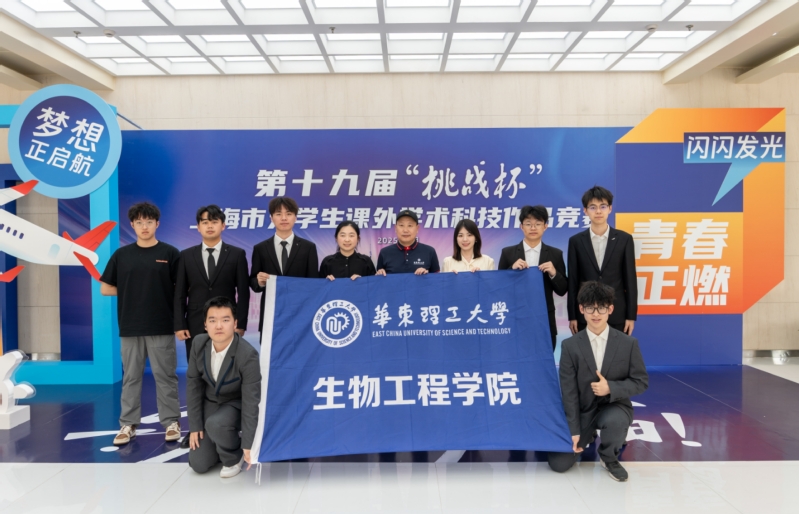图片说明:第十九届“挑战杯”上海市大学生课外学术科技作品竞赛颁奖现场(左八为团队负责人杨永康)