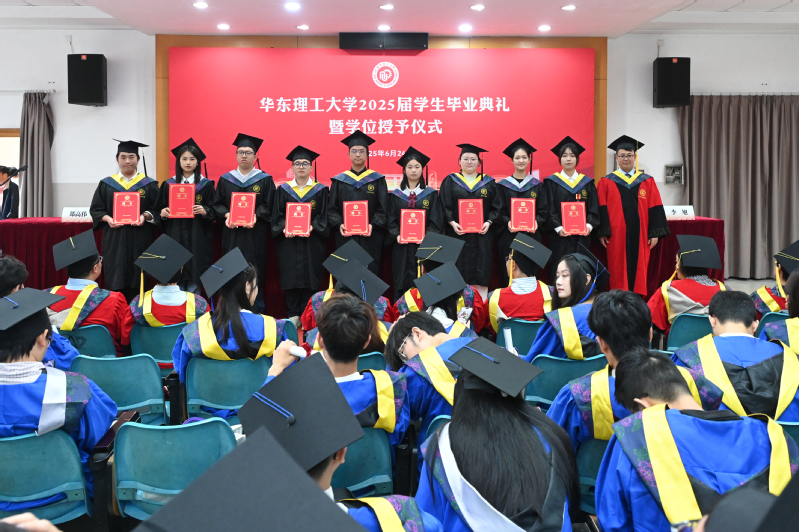 院长叶邦策,国家生化工程技术研究中心(上海)主任庄英萍,学院副院长、生物反应器工程全国重点实验室主任张立新,校科学技术发展研究院副院长刘琴,校研究生院副院长郁惠蕾,学院党委副书记李旭,学院副院长郑高伟,学位委员会委员,研究生导师代表,班导师,辅导员,教务员参加典礼。师生家长齐聚一堂,共同见证2025届毕业生开启人生新篇章的重要时刻。毕业典礼由学院党委副书记孟庆鹏主持。