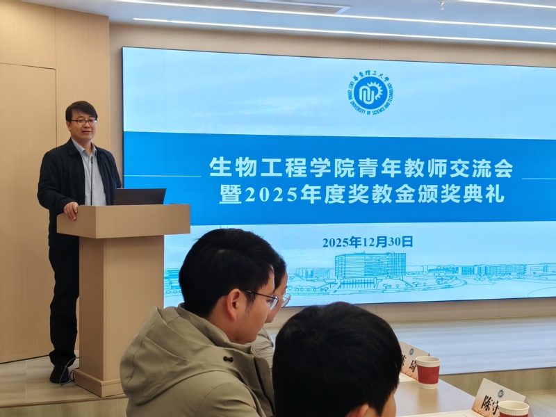在沃美报告厅举行青年教师交流会暨2025年度奖教金颁奖典礼。学校党委教师工作部部长钱嫦萍、生物工程学院党委书记程家高、院长叶邦策等党政领导班子成员及学院教师代表共同出席。